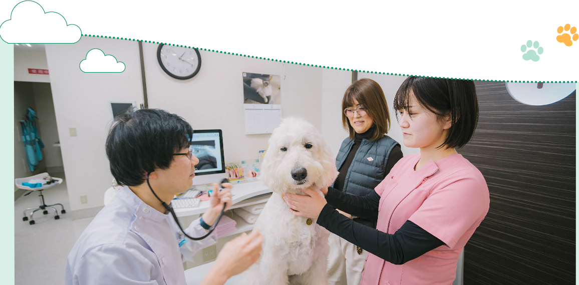 また、患者さんには各種検査で苦手なことを頑張ってもらわなければならない時があるかもしれません。実際の治療でも、お家で薬を飲む等の毎日の治療は飼い主さんの協力がなくてはできません。「病気は医療スタッフと患者さんと飼い主さんで協力して治していく」この想いを当院では大切にしていきます。